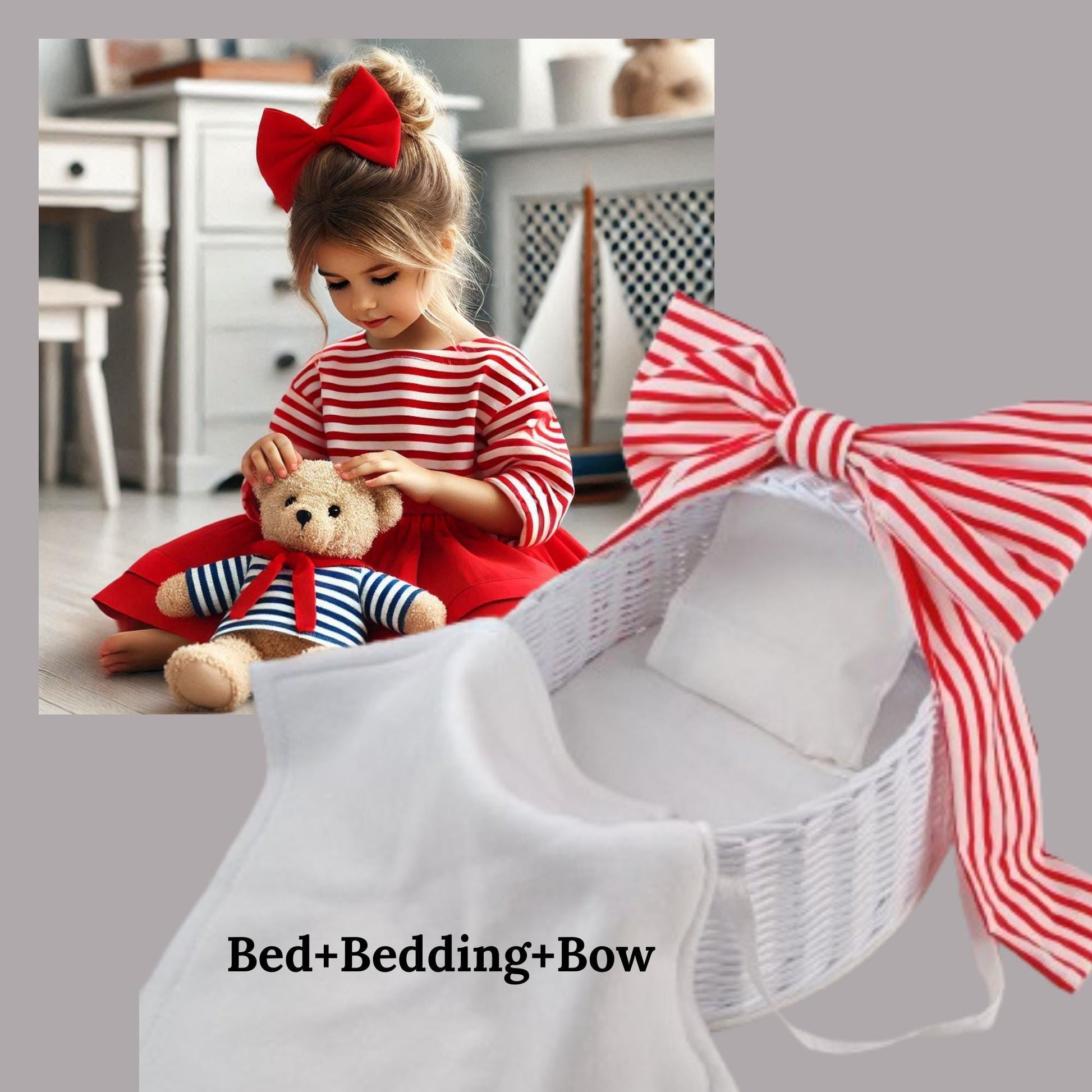 SET 3/ DOLL BED + Bedding (mattress, , pillow, blanket) + BOW