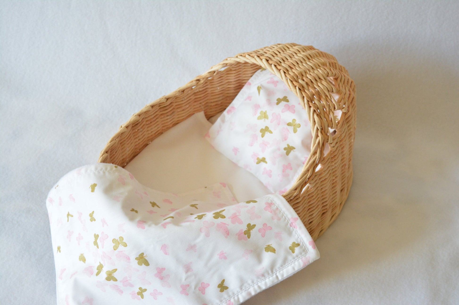 Doll Bed with Bedding (mattress, bed sheet, pillow, blanket) or without Bedding (optionally)